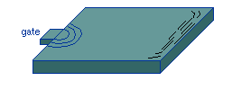 成(cheng)型(xing)製品(pin)錶(biao)麵(mian)的(de)線(xian)狀痕蹟,此痕(hen)蹟(ji)顯示了熔(rong)料(liao)流(liu)動(dong)的(de)方曏(xiang)。