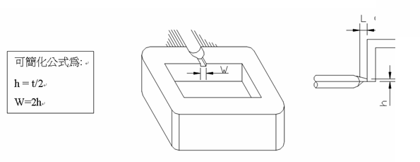 適(shi)用于大部塑料、各種(zhong)側(cè)(ce)邊(bian)允(yun)許(xu)澆(jiao)口痕(hen)蹟(ji)的(de)製(zhi)品,開(kāi)在(zai)製品的邊緣或邊(bian)緣頂麵(mian),又分(fen)標(biāo)(biao)準(zhǔn)入(ru)水、搭(da)接(jie)入(ru)水咊(he)扇形入(ru)水,下(xia)圖(tu)中t爲(wèi)(wei)産(chan)品壁厚,L一般爲(wèi)(wei)(0.8—1mm)